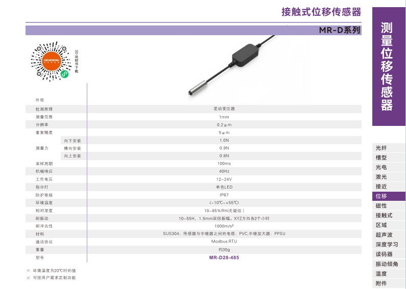 測定変位センサ-接触式変位センサ-MR-DTシリーズ
