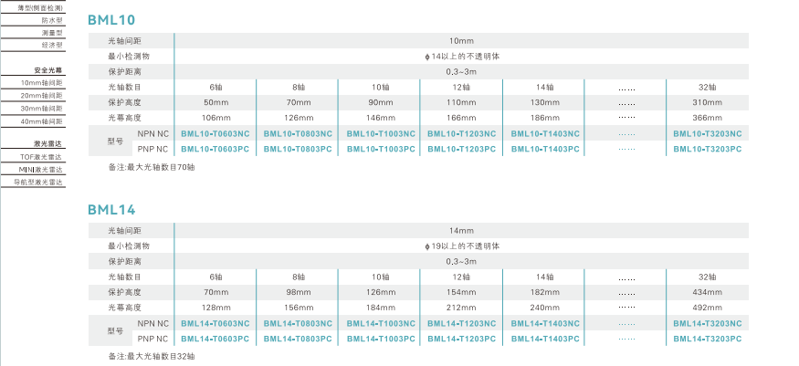 ゾーン安全バリアセンサー-タイプ選択ガイド