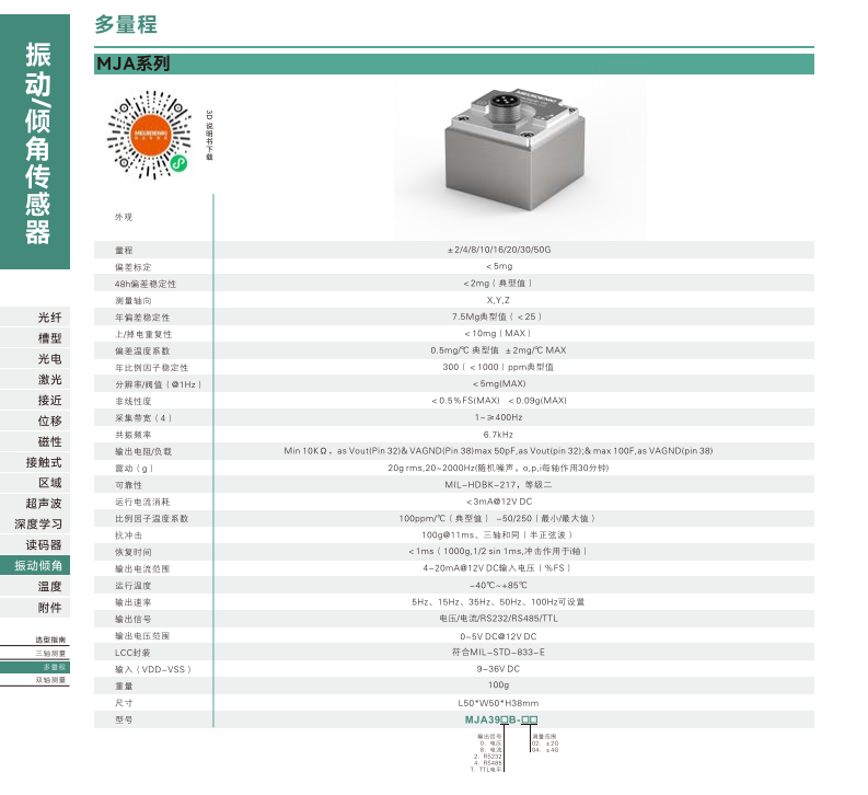 振動傾斜角センサ-マルチレンジ-MJAシリーズ