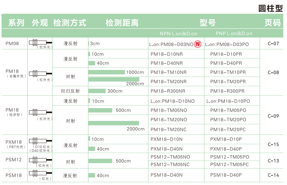 光電センサ-円筒型-PM 08シリーズ-拡散反射