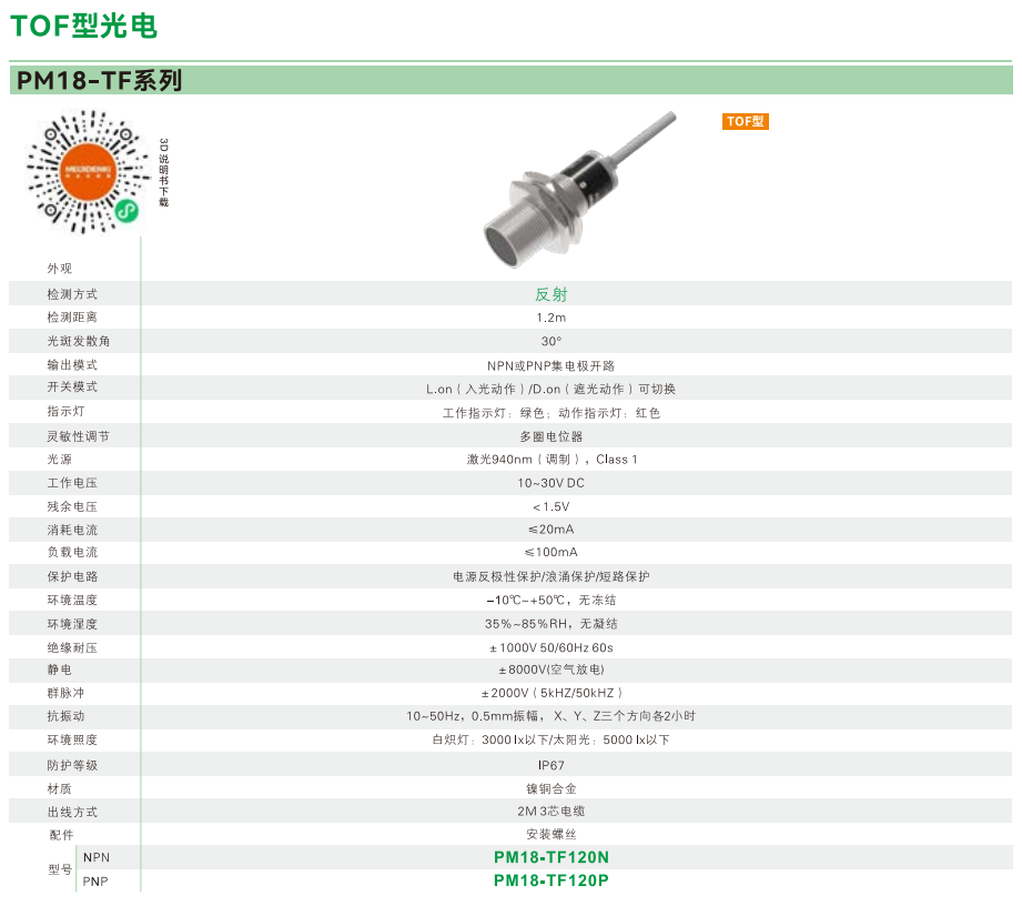 光電センサ-TOF型光電-PM 18-TFシリーズ-反射