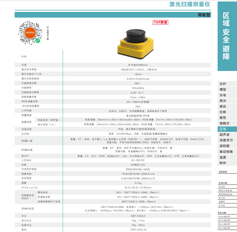 エリア安全バリア回避センサー-レーザー走査測定器-ナビゲーションタイプ
