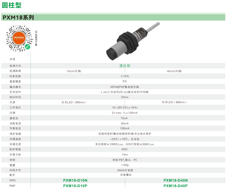 光電センサ-円筒型-PXM 18シリーズ-拡散反射