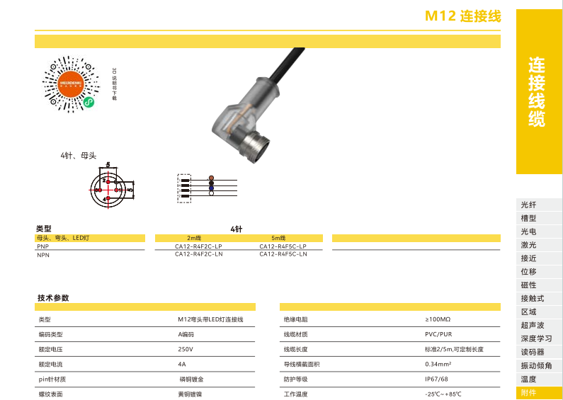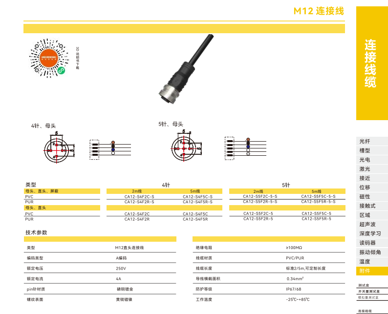 接続ケーブル-M 12接続ケーブル