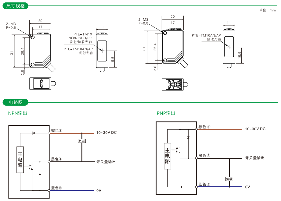 光電センサ-汎用角型-PTEシリーズ-経済型-拡散反射-限定反射-回帰反射