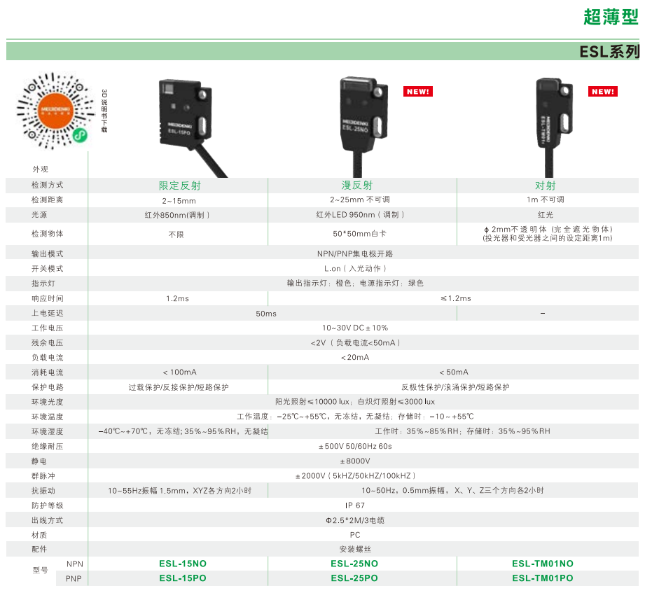 光電センサー-超薄型-ESLシリーズ-限定反射-拡散反射-対射