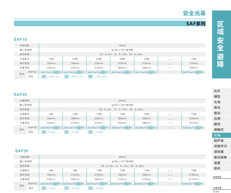 エリア安全バリアセンサ-安全スクリーン-SAFシリーズ