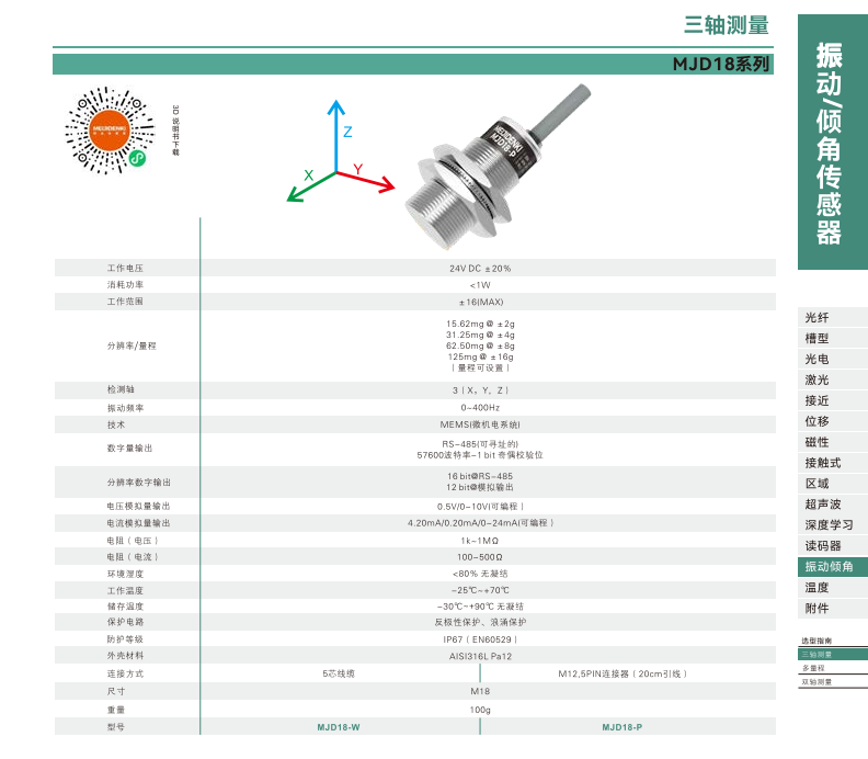 振動傾角センサ-三軸測定-MJD 18シリーズ