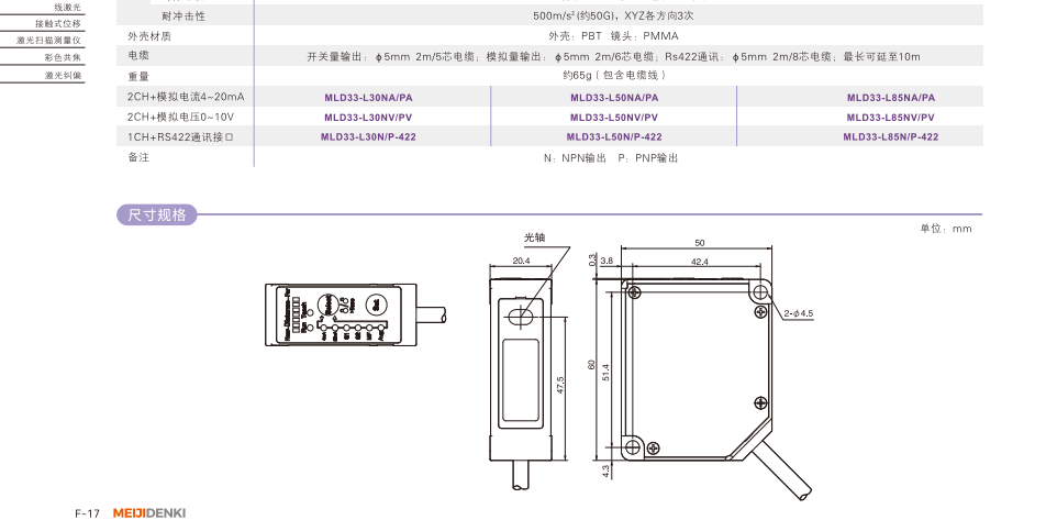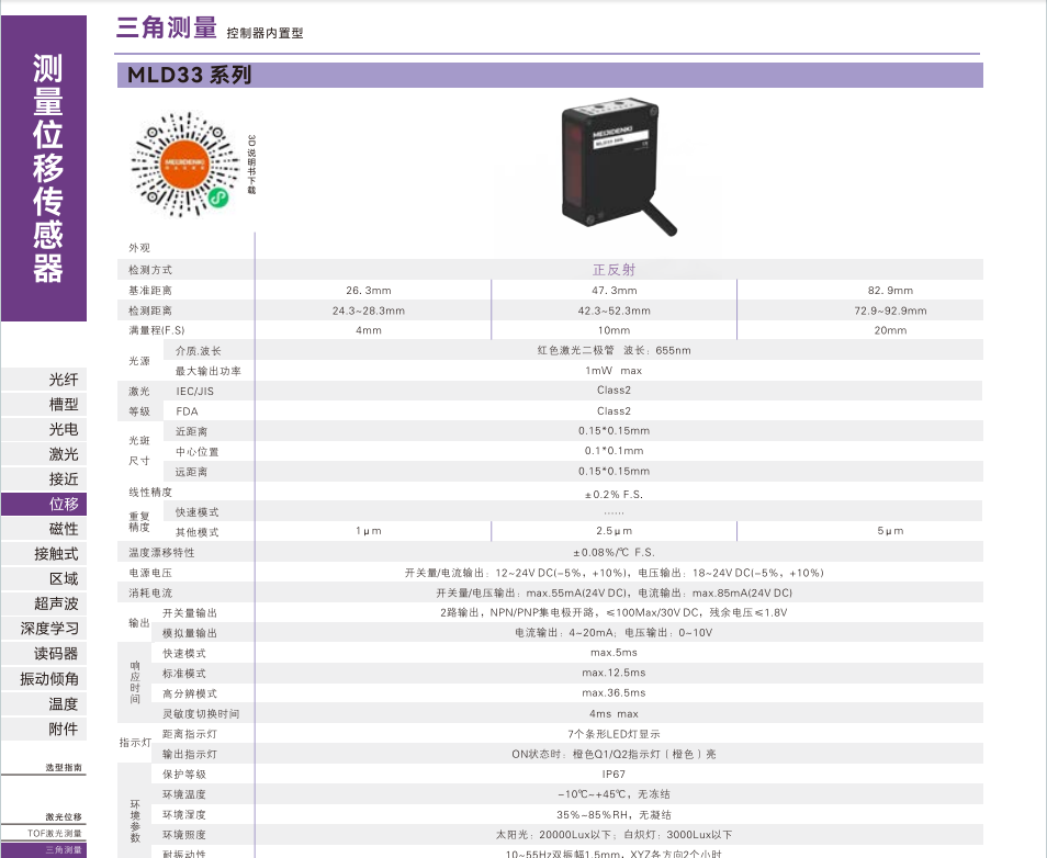 測定変位センサ-型式選択ガイド-MLD 33シリーズ