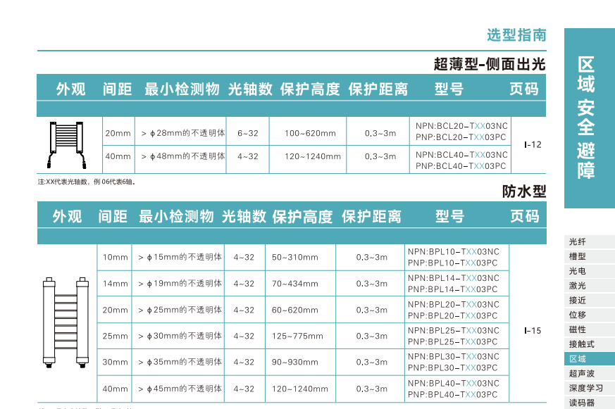 ゾーン安全バリアセンサー-タイプ選択ガイド