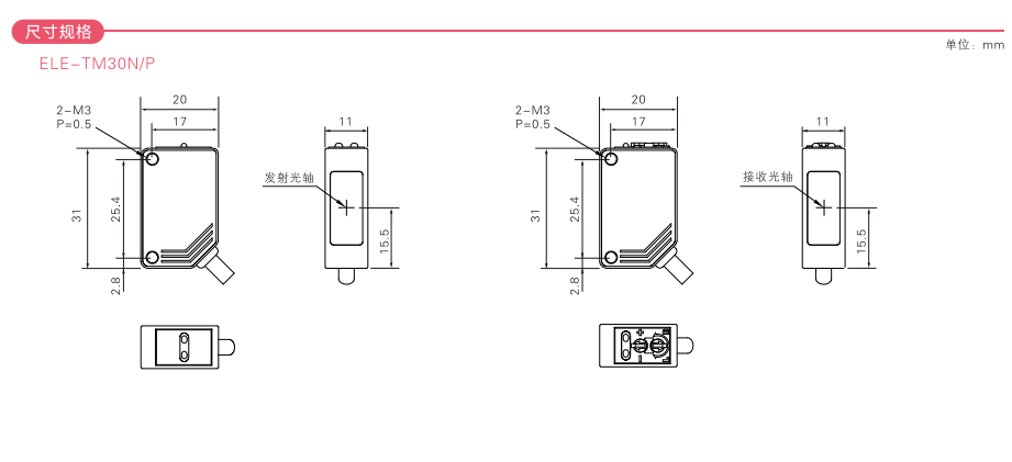レーザーセンサー-汎用角型-ELEシリーズ-経済型-拡散反射-背景抑制-拡散反射-回帰反射-対射