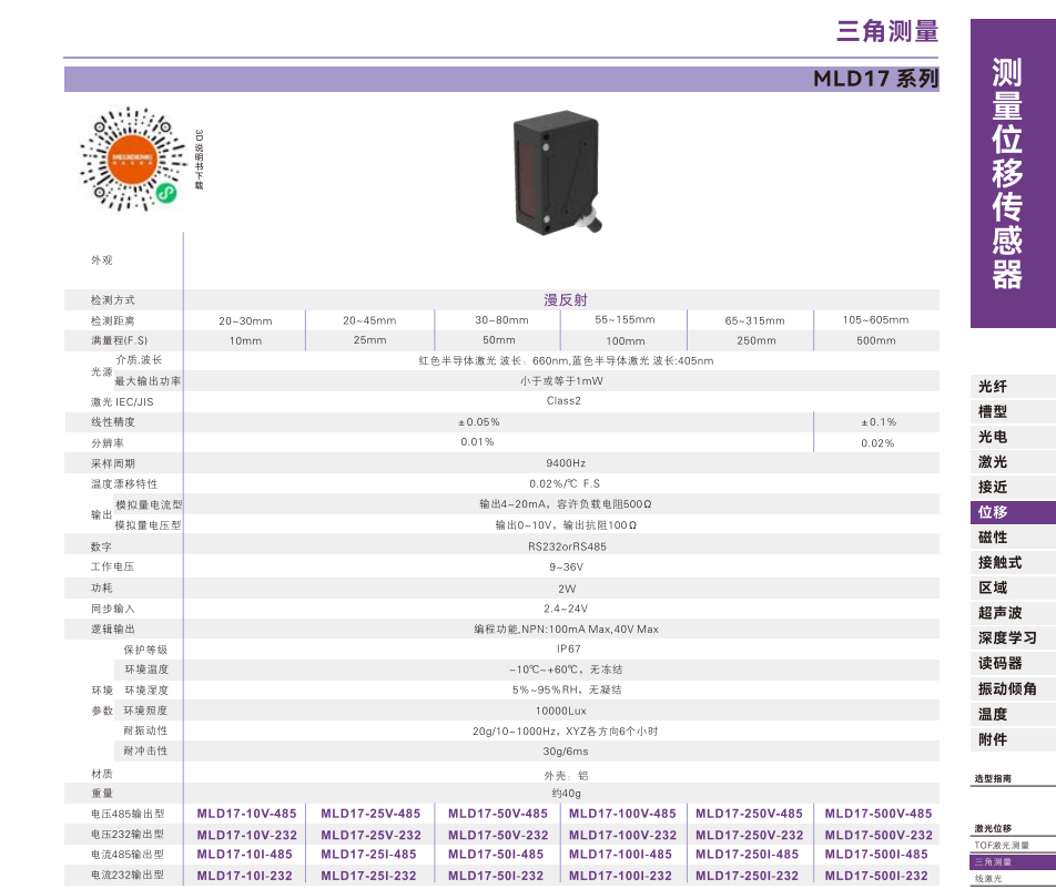 測定変位センサ-三角測定-MLD 17シリーズ