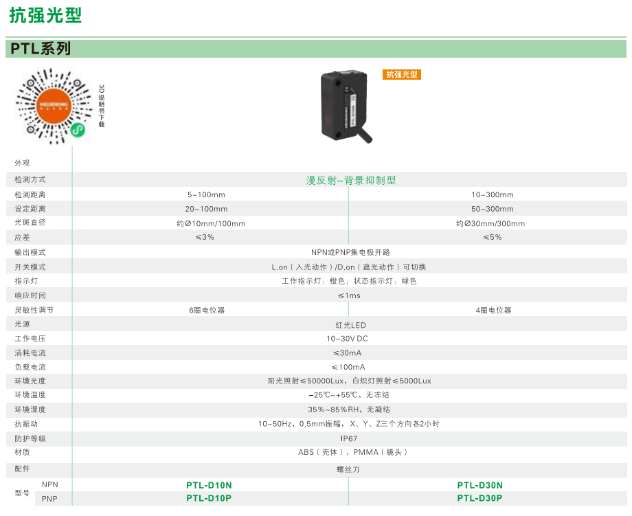 光電センサ-耐強光型-PTLシリーズ-拡散反射-背景抑制型