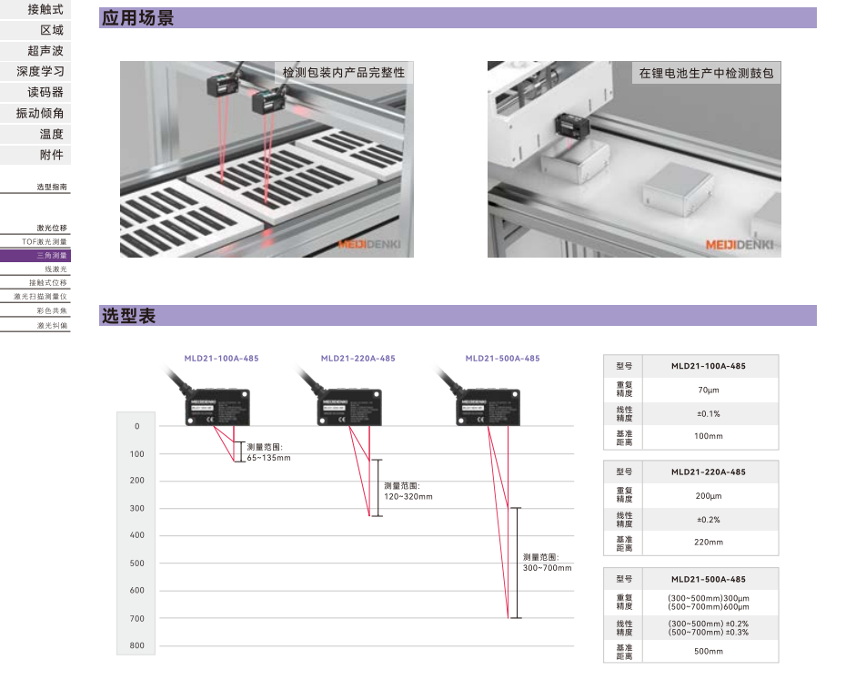 測定変位センサ-型式選択ガイド-MLD 21シリーズ