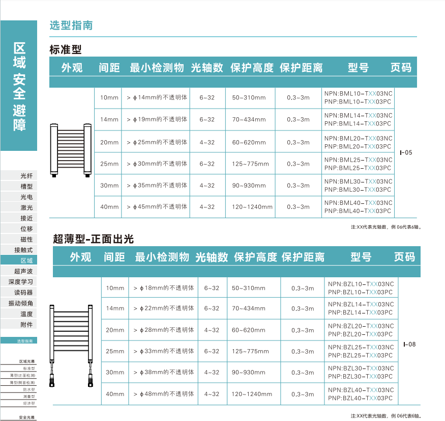 ゾーン安全バリアセンサー-タイプ選択ガイド