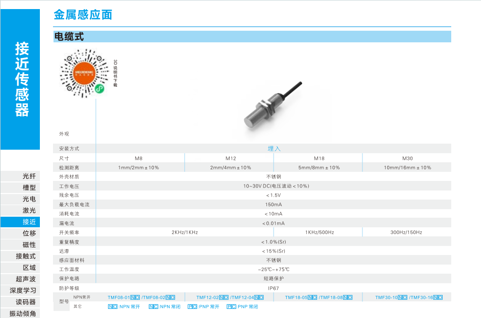近接センサ-金属誘導面-ケーブル式