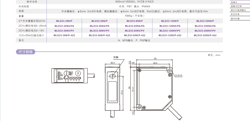 測定変位センサ-型式選択ガイド-MLD 33シリーズ