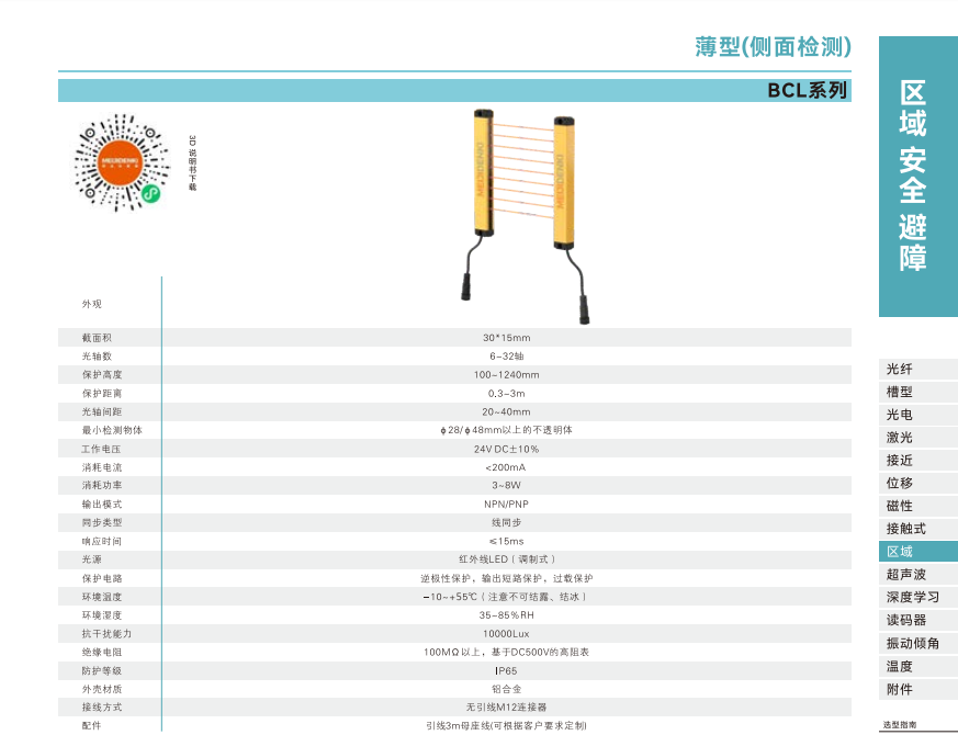 領域安全バリアセンサ-薄型(側面検出)-BCLシリーズ
