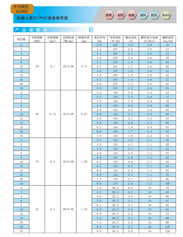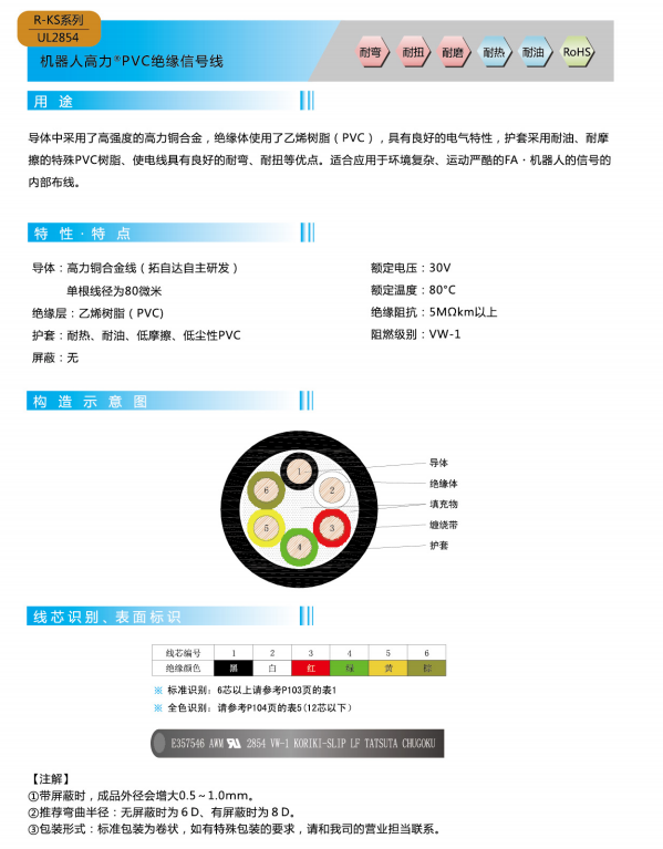 ロボットハイパワー®PVC絶縁信号線-UL 2854