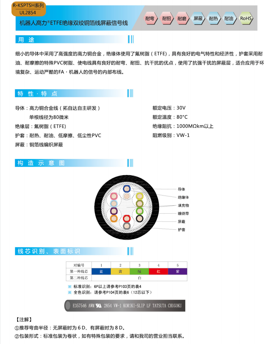 ロボットハイパワー®PVC絶縁シールド信号線-UL 2854