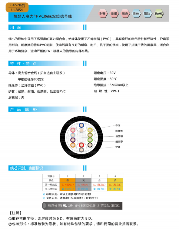 ロボットハイパワー®PVC絶縁ツイストペア信号線-UL 2854