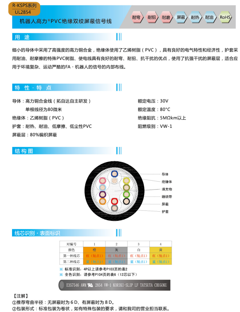 ロボットハイパワー®PVC絶縁ツイスト銅箔線遮蔽信号線-UL 2854