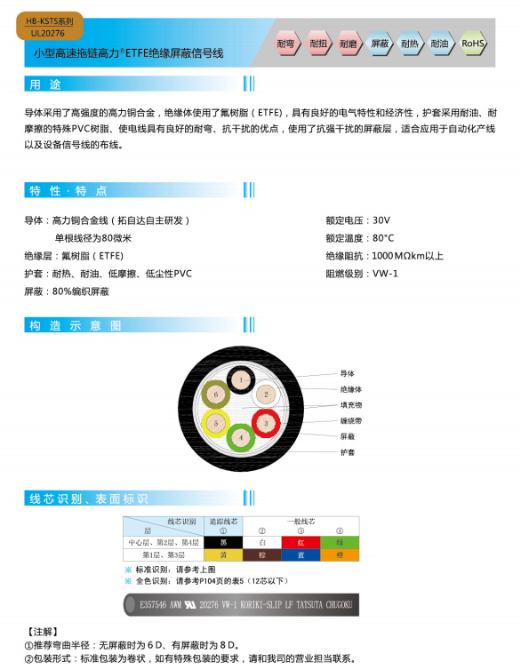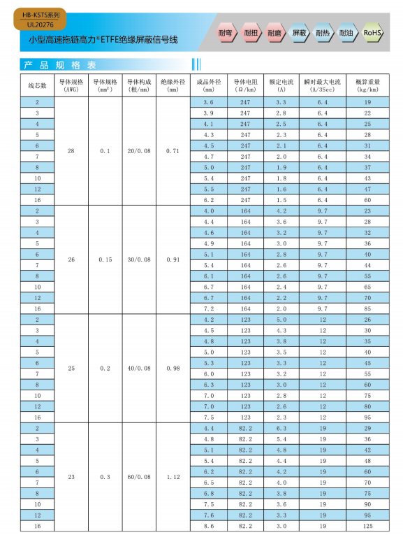 小型高速チェーン高力®ETFE絶縁信号線−UL 20276