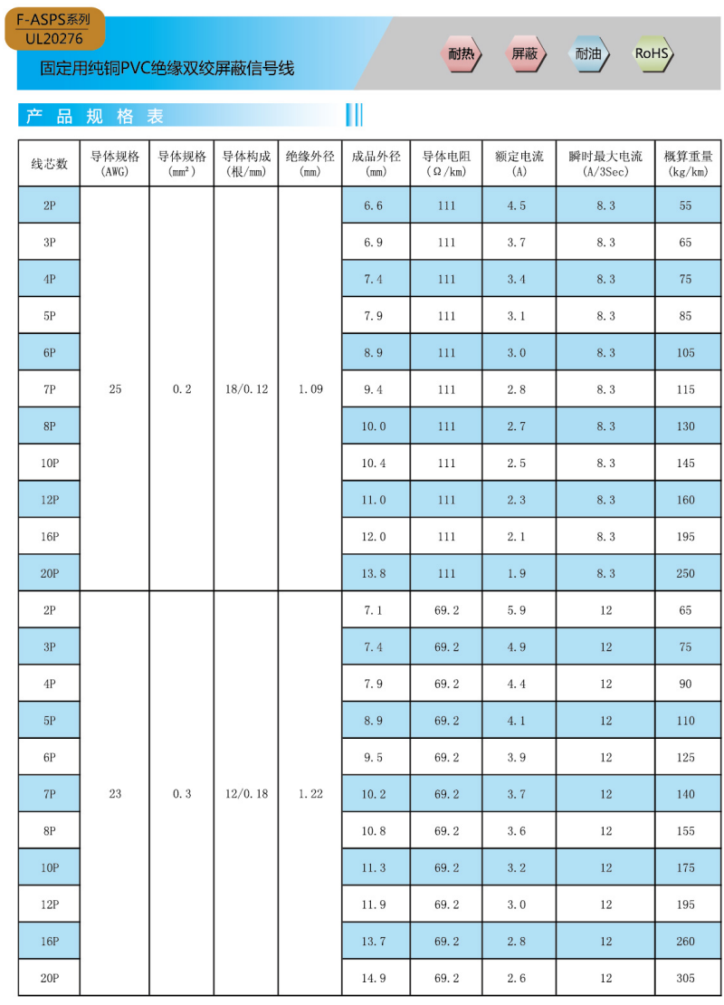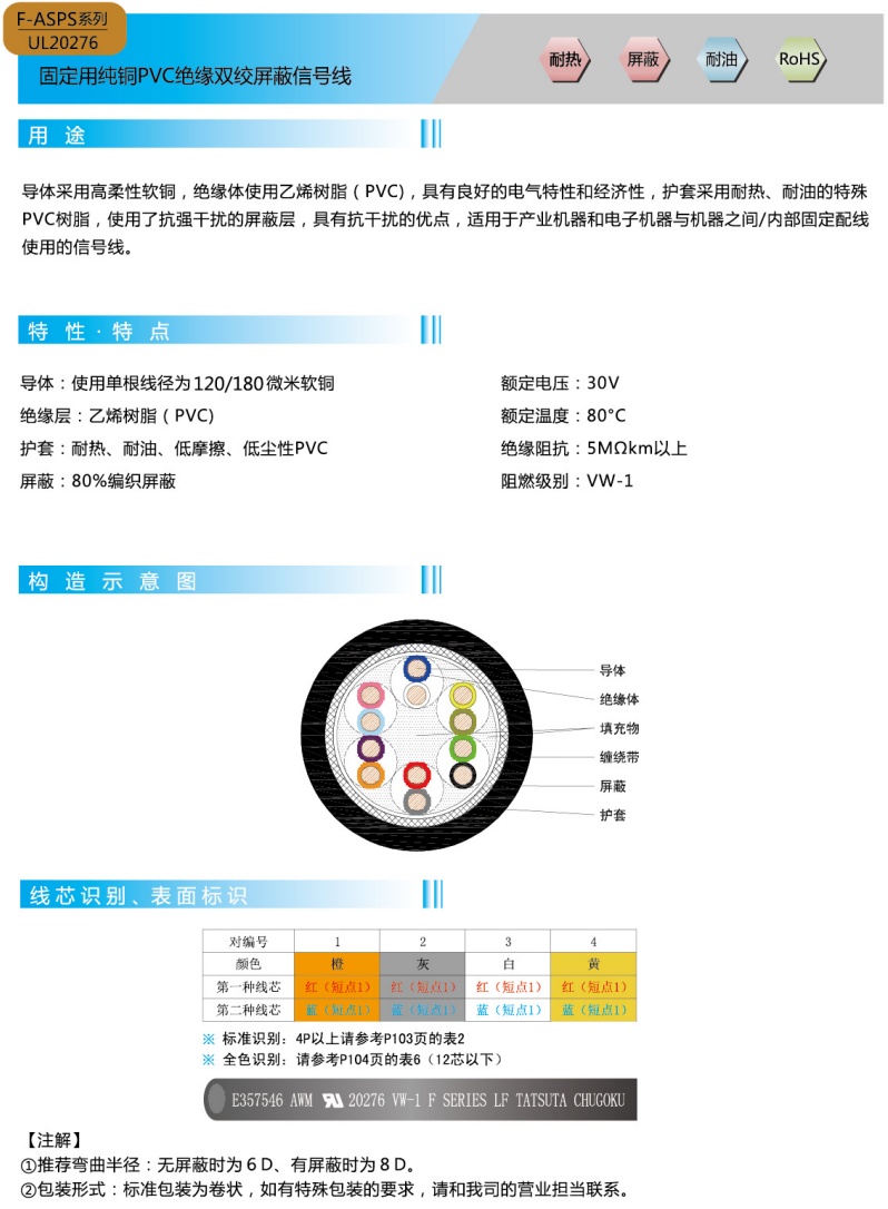 固定用純銅PVC絶縁ツイスト信号線-UL 20276