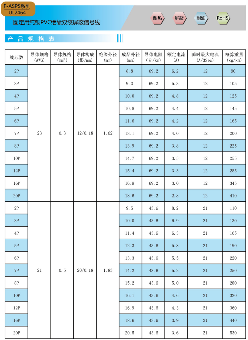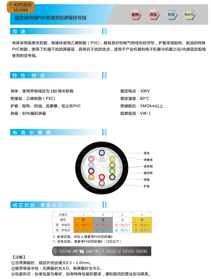固定用純銅PVC絶縁ツイスト信号線-UL 2464