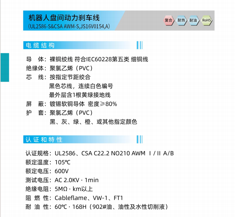 ロボットディスク間動力ブレーキ線(UL 2586-S&CSA AWM-S、JS 16 V 0154、A)