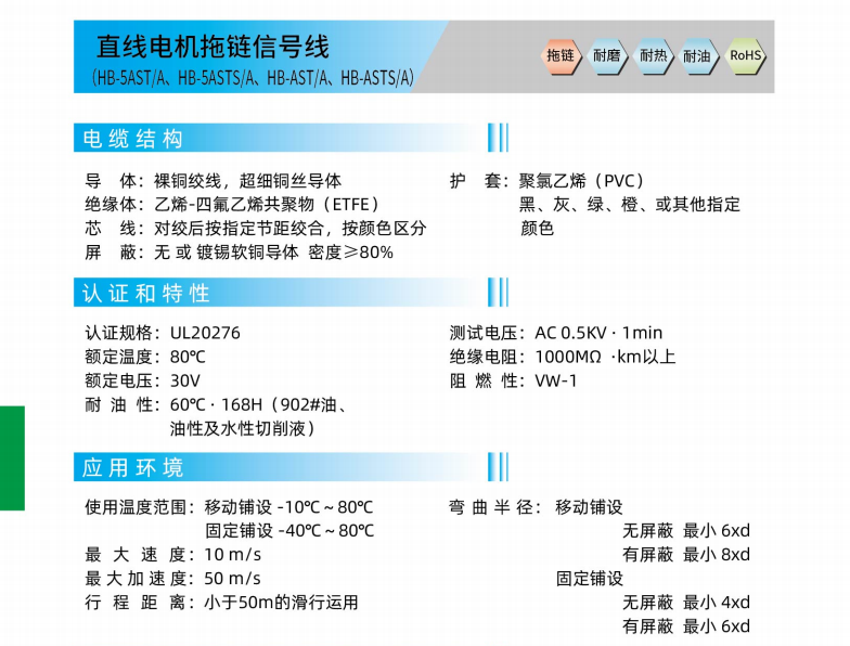 リニアモータのドラッグチェーン信号線-(HB-5 AST ^ A、HB-5 ASTS ^ A、HB-AST ^ A、HB-ASTS ^ A)