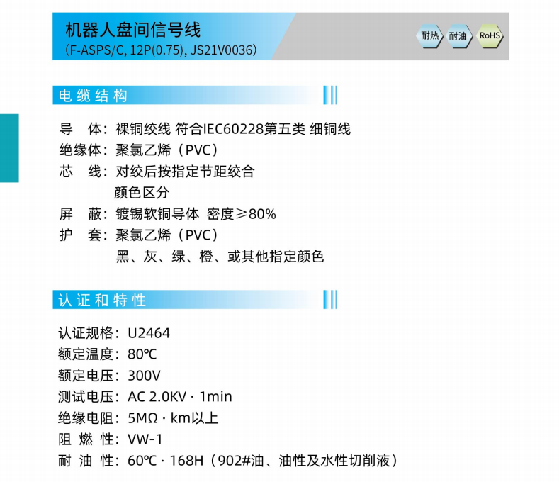 ロボットディスク間信号線(F-ASPS ^ C、12 P(0.75)、JS 21 V 0036)