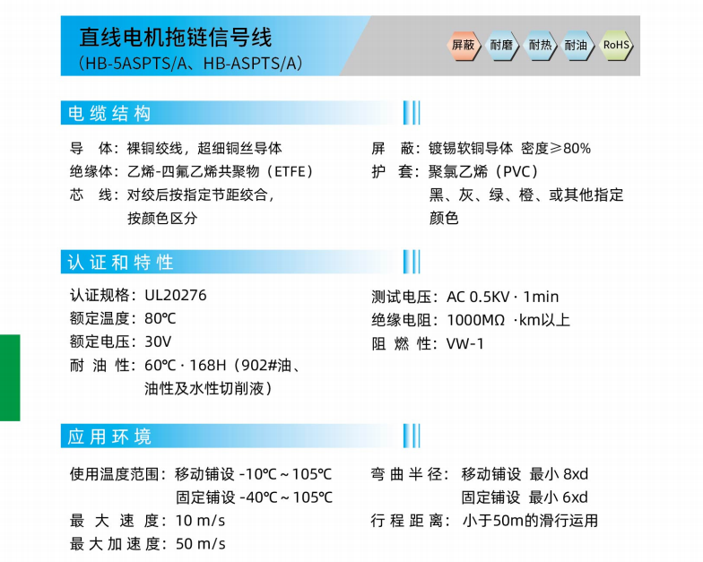 リニアモータのドラッグチェーン信号線-(HB-5 AST ^ A、HB-5 ASTS ^ A、HB-AST ^ A、HB-ASTS ^ A)