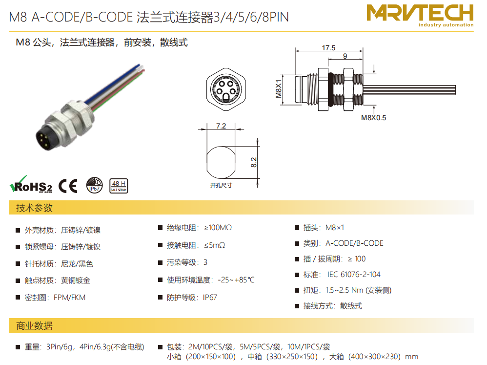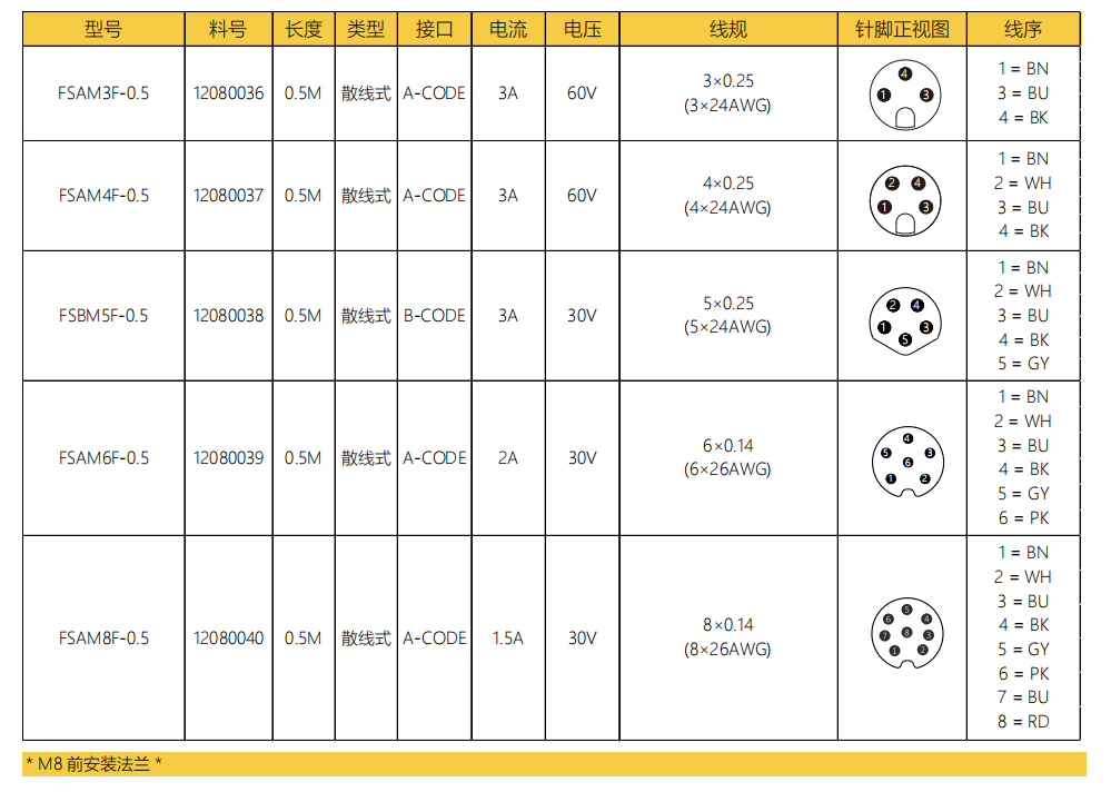M 8オス-フランジコネクタ-前取付け-散線式-34568 PIN