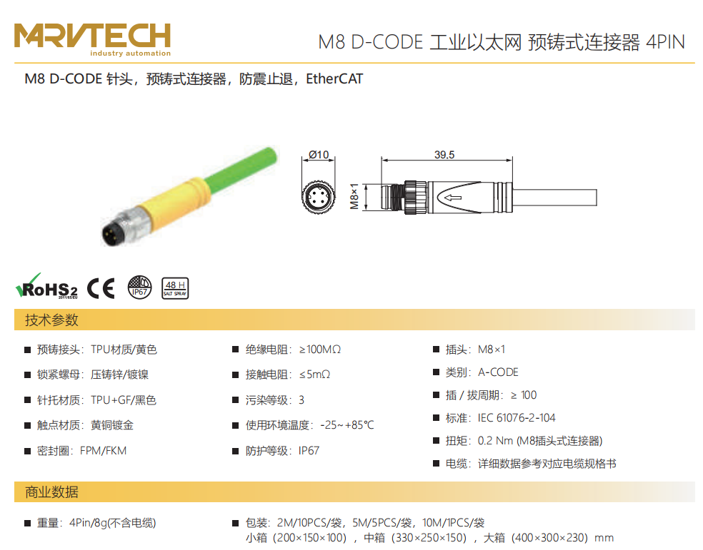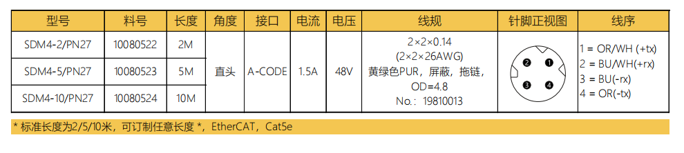 M 8 D-CODE針-プレキャストコネクタ-防振後退防止-EtherCAT-4 PIN