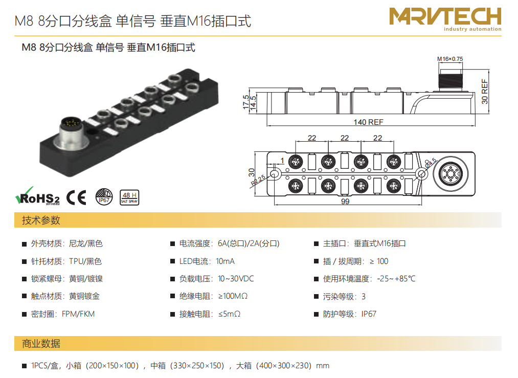 M 8 8分口分線箱-単信号-垂直M 16ソケット式