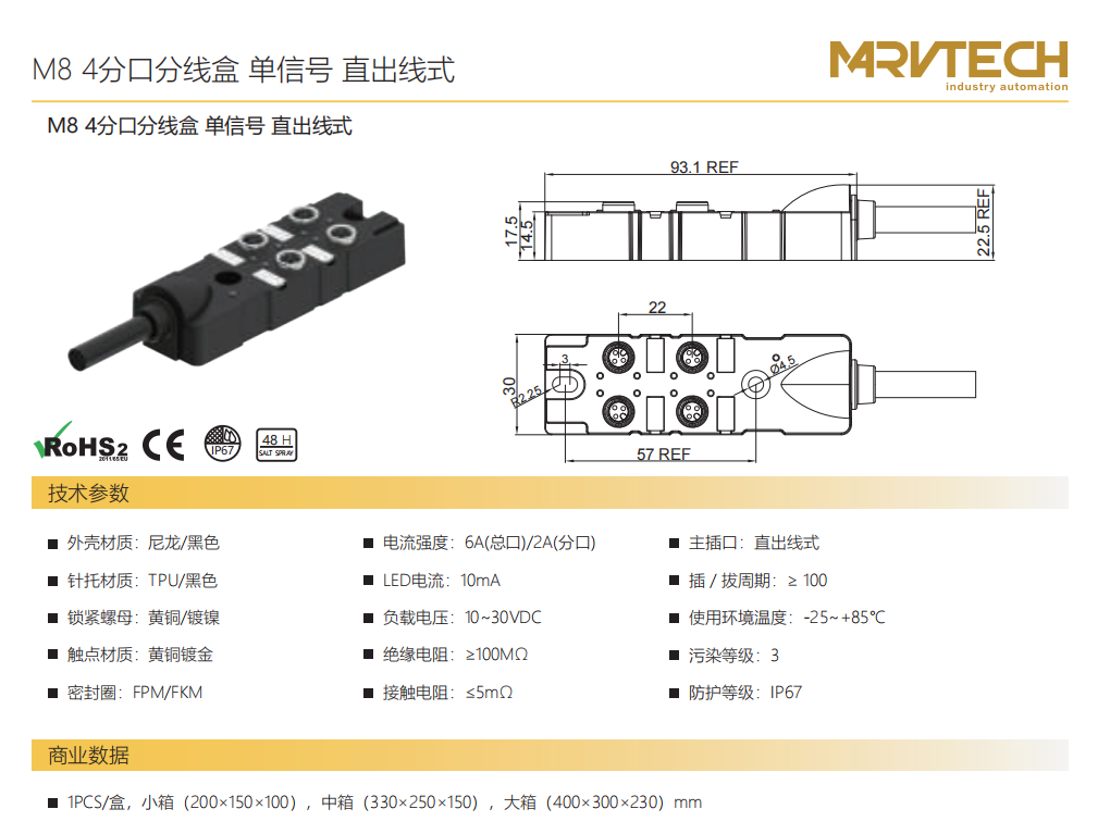 M 8 4タップ分線ボックス-単信号-垂直M 12ソケット式